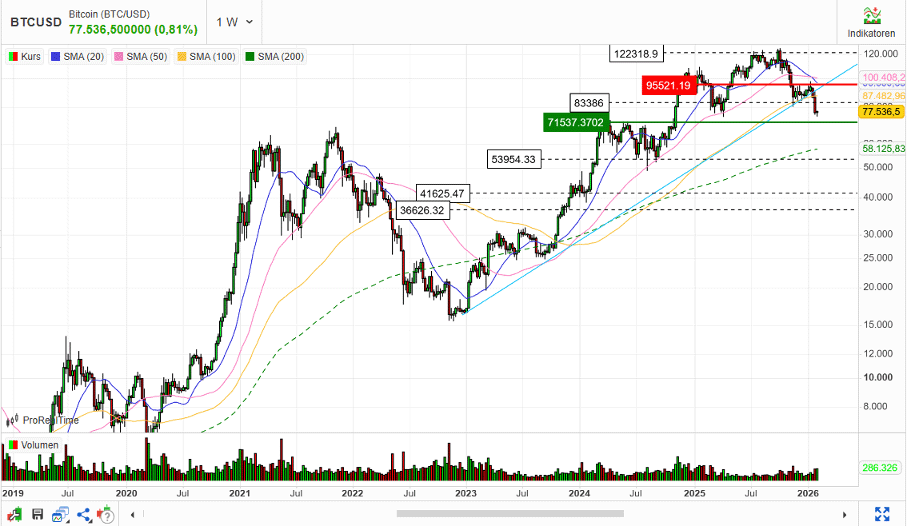 Mein persönliches Fazit zu Bitcoin ist langfristig optimistisch. Die Bewegung von knapp unter 10.000 US Dollar Anfang 2020 bis in den Bereich um 125.000 US-Dollar im Herbst 2025 und der anschließende Rücklauf auf zuletzt rund 78.000 US-Dollar zeigen, wie hochvolatil Bitcoin ist und dass deutliche Rücksetzer zum Profil dieser Anlageklasse gehören. Trotzdem bleibe ich langfristig bullisch, weil Bitcoin als knappes, regelbasiertes digitales Gut wahrgenommen wird und die Marktinfrastruktur samt Zugang über regulierte Produkte reifer geworden ist.