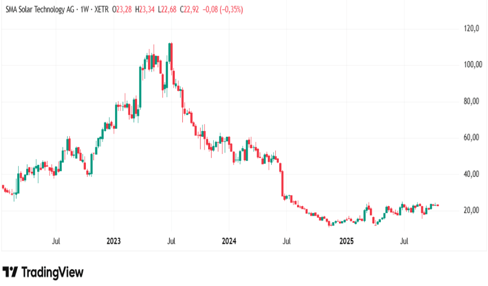 SMA Solar – Stark steigend von Anfang 2022 bis Juli 2023, dann Korrektur Quelle: https://de.tradingview.com